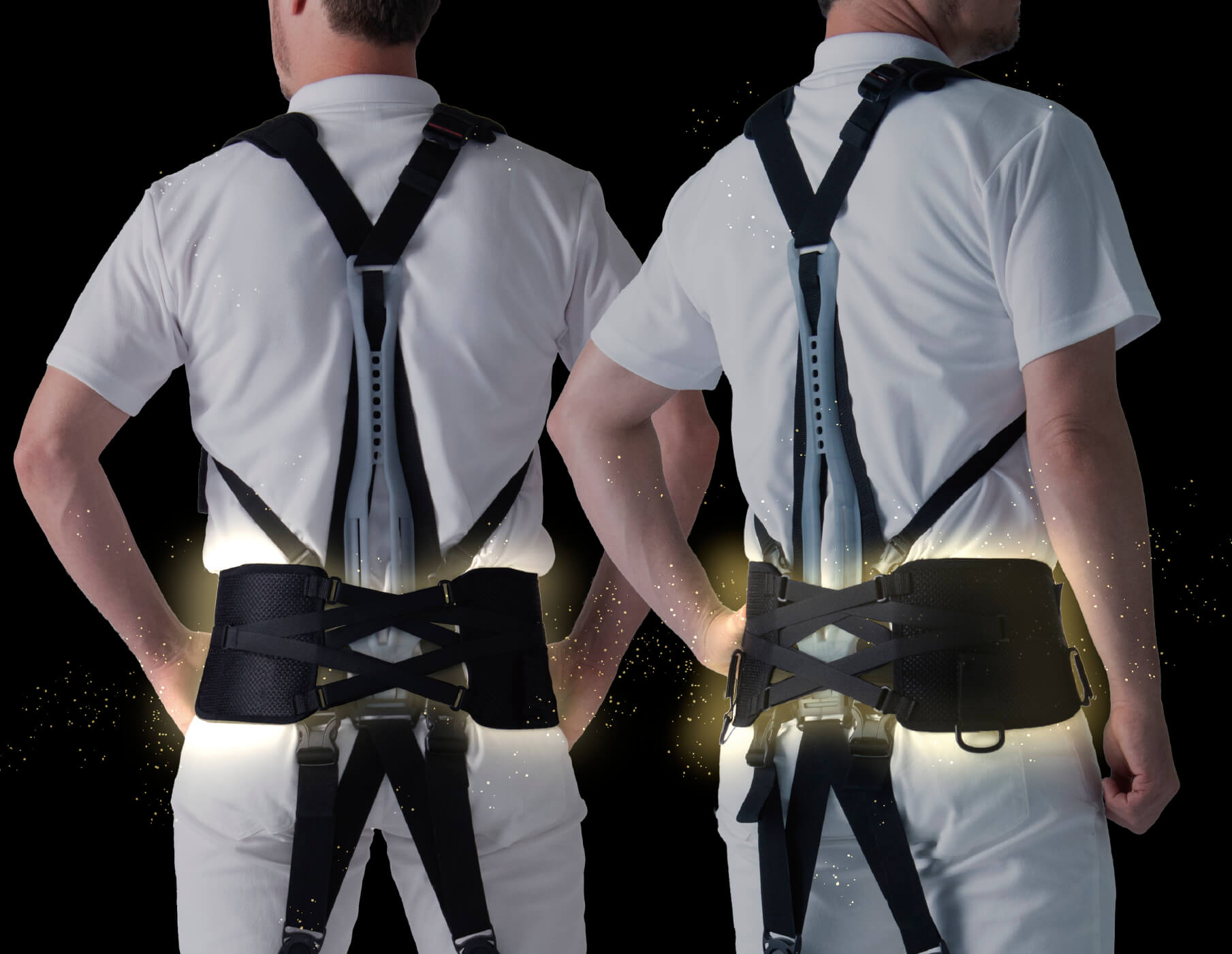 サポートジャケットは、特許取得のアシストスーツ。作業現場での荷物や重量物の持ち上げ・持ち下げ時に発生する作業者の腰や身体への負担を軽減することを目的に開発された製品です。