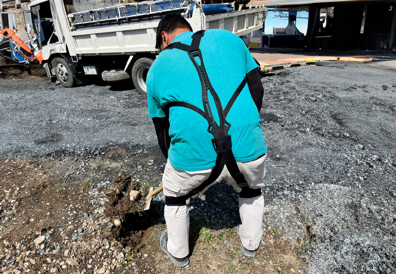 特に、前屈姿勢を保持する作業には効果絶大で、つけるとつけないで疲れ方が全く違いました。もちろん、重量物の運搬にも効果を発揮しました。